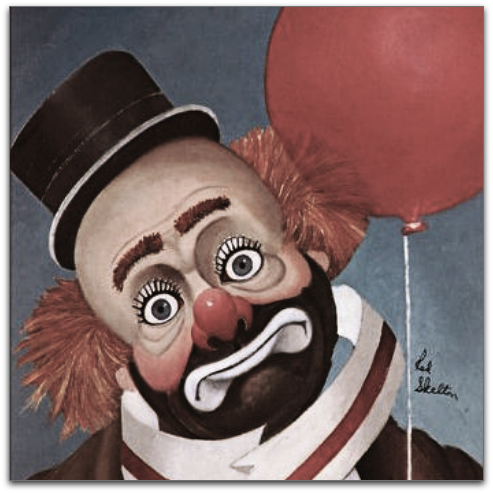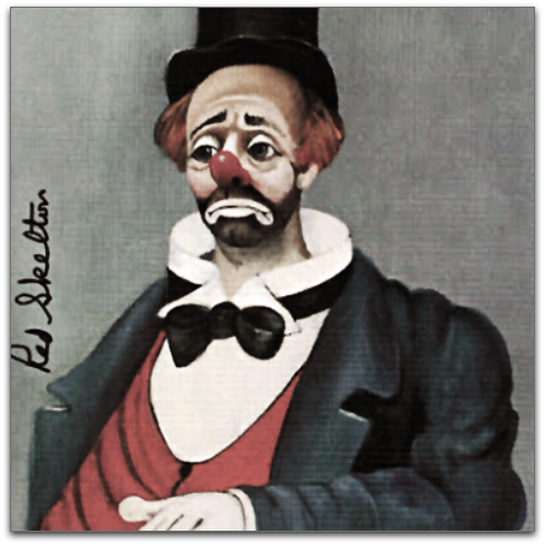 Red Skelton original works of art can be found among some of the most prestigious, private, as well as public, collections throughout the world. Red Skelton, one of the most creative minds of our time, was known for his smiling, lovable clowns and his world famous characters, such as “Freddie the Freeloader”, “Clem Kadiddlehopper”, and “Sheriff Deadeye”.